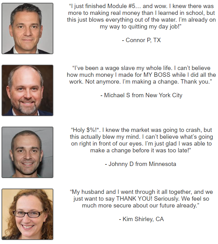 ✔ Module #1: Get the real-life, behind-the-scenes look at exactly how the big banks are working to steal your money’s value. This module alone will save you from THOUSANDS of dollars in lost value in your bank account! ($299 value)