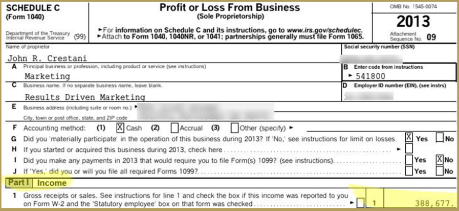 *John's Tax Form in his very first year using Profit Cycling (not representative of your results)